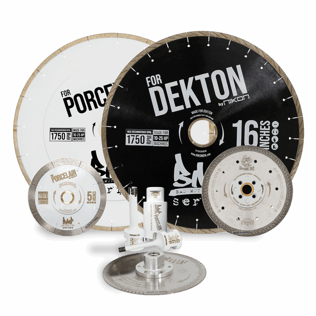 Born from the demand for stronger, cleaner, and more precise tools, the BMF Series is engineered for fabricators cutting today’s toughest materials like quartzite, porcelain, and ultra-compact surfaces. Designed with premium diamonds, tall segments, and vibration-dampening cores, every BMF tool delivers high-performance cutting with maximum accuracy and minimal chipping — making it the blade of choice when quality and finish can’t be compromised.